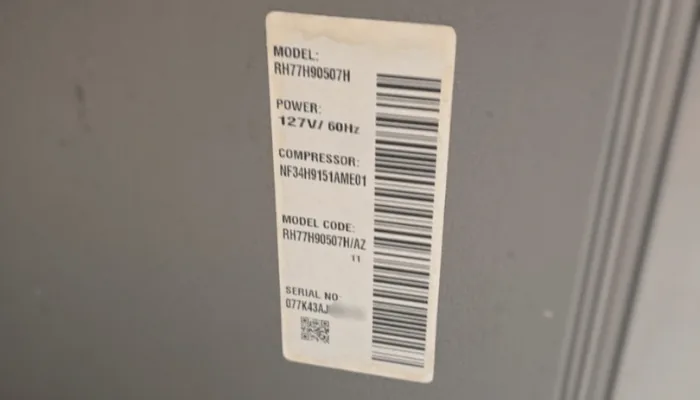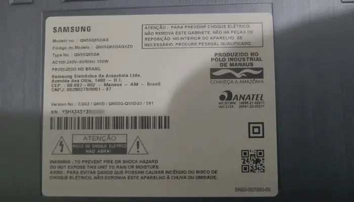 A etiqueta — também chamada de label, etiqueta de identificação ou S/N — é um adesivo original Samsung que contém informações como: